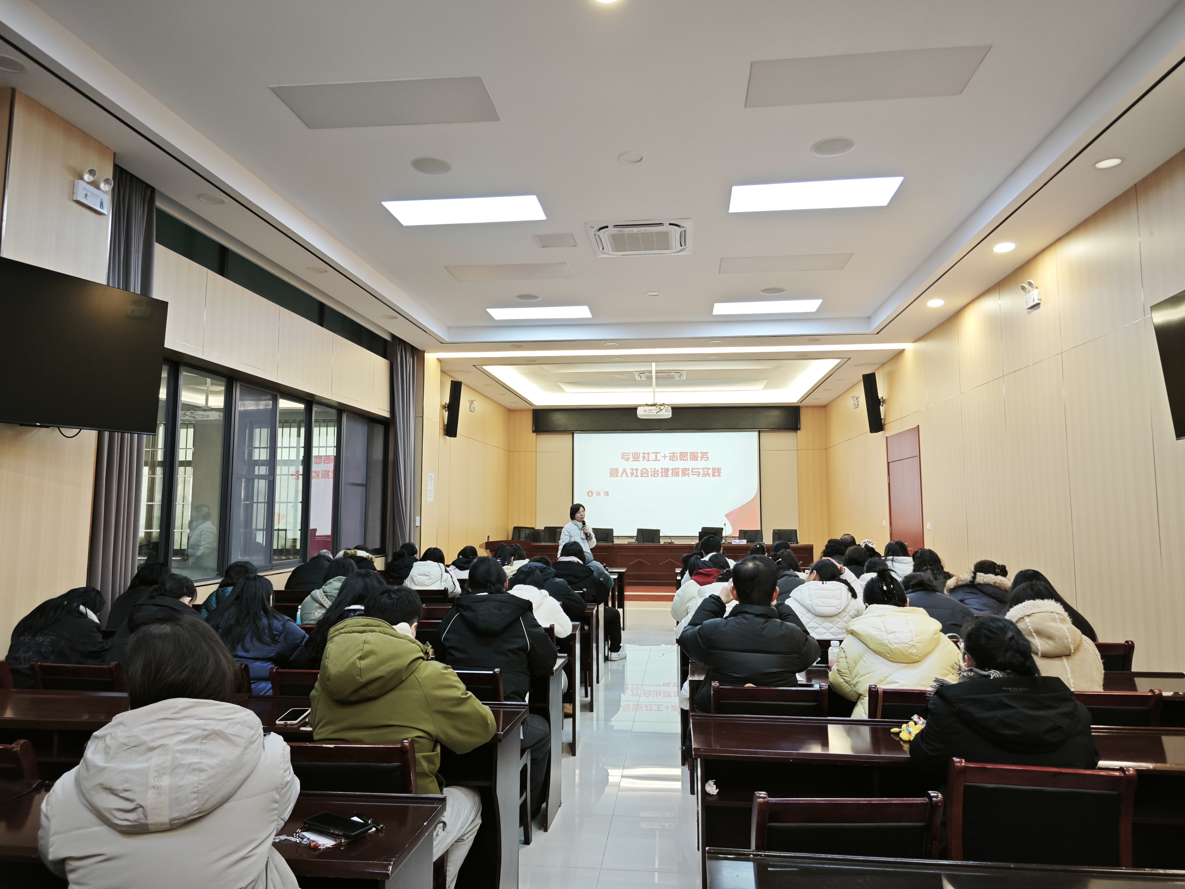 随后,湖北工业大学马克思主义学院副教授、高级社会工作师张强老师带来了精彩分享。她结合多年理论研究与实务经验,将专业社工与志愿服务的融合比作“左手握右手”,阐释了二者知识互补、资源联动、理念交融的核心逻辑。通过广州信访、荆门长源热电社区等典型案例,直观展现了“专业引领+群众参与”提升服务精准性与持续性方面的实践成效。此外,她还介绍了积分激励、星级认证等可持续运作机制,为社区开展相关工作提供了清晰实用的方法指引。